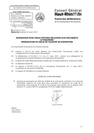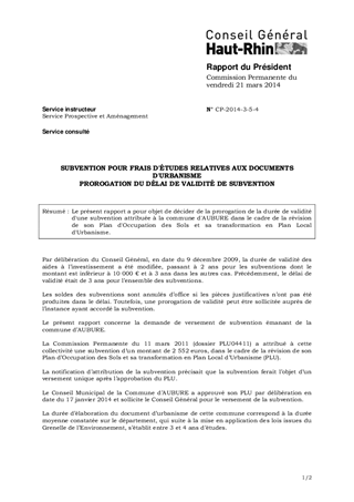 Le présent rapport a pour objet de décider de la prorogation de la durée de validité d'une subvention attribuée à la commune d'AUBURE dans le cadre de la révision de son Plan d'Occupation des Sols et sa transformation en Plan Local d'Urbanisme.