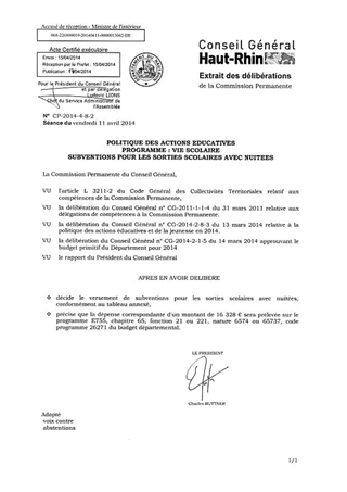 POLITIQUE DES ACTIONS EDUCATIVESPROGRAMME : VIE SCOLAIRESUBVENTIONS POUR LES SORTIES SCOLAIRES AVEC NUITEES