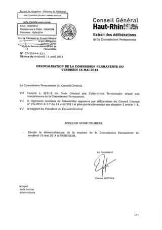 DELOCALISATION DE LA COMMISSION PERMANENTE DU VENDREDI 16 MAI 2014