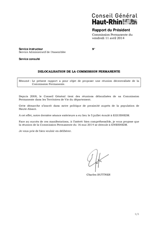 Le présent rapport a pour objet de proposer une réunion décentralisée de la Commssion Permanente.