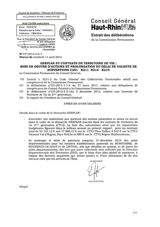 GERPLAN ET CONTRATS DE TERRITOIRE DE VIE :MISE EN OEUVRE D'ACTIONS ET PROLONGATION DU DELAI DE VALIDITE DE SUBVENTIONS C251 K211 K214 K215