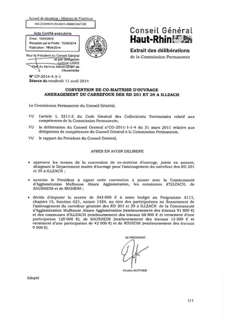 Le rapport a pour objet d’organiser les modalités d'une co-maîtrise d'ouvrage entre les communes d'ILLZACH, SAUSHEIM, RIXHEIM, la Communauté d'Agglomération Mulhouse Alsace Agglomération et le Département, pour l'aménagement du carrefour en "Y" des RD 201 et 39 à ILLZACH.