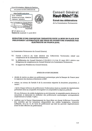 SIGNATURE D'UNE CONVENTION TRIPARTITE POUR LA MISE EN PLACE D'UN PRELEVEMENT AUTOMATIQUE DES FRAIS DE FOURNITURE D'ENERGIE PAR ELECTRICITE DE FRANCE (EDF)