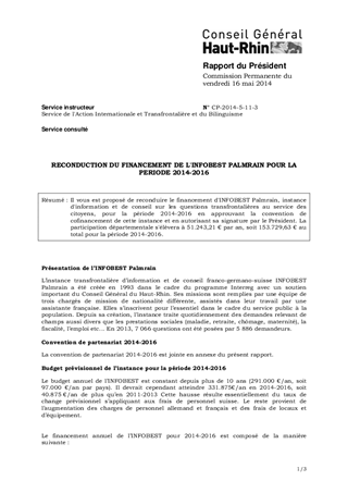 RECONDUCTION DU FINANCEMENT DE L'INFOBEST PALMRAIN POUR LA PERIODE 2014-2016