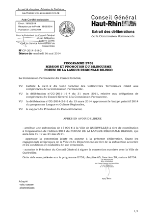 PROGRAMME E758 MISSION ET PROMOTION DU BILINGUISME FORUM DE LA LANGUE REGIONALE BILINGO