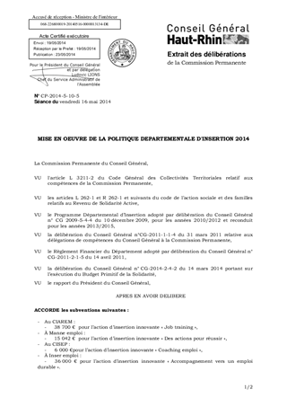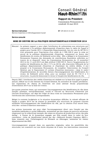 MISE EN OEUVRE DE LA POLITIQUE DEPARTEMENTALE D'INSERTION 2014
