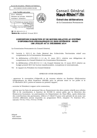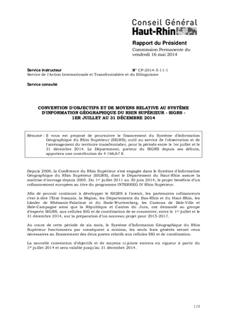 CONVENTION D'OBJECTIFS ET DE MOYENS RELATIVE AU SYSTÈME D'INFORMATION GÉOGRAPHIQUE DU RHIN SUPÉRIEUR - SIGRS - 1ER JUILLET AU 31 DÉCEMBRE 2014