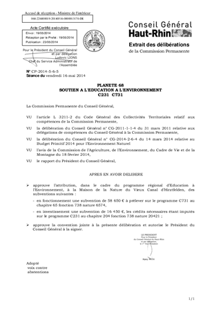 PLANETE 68 SOUTIEN A L'EDUCATION A L'ENVIRONNEMENT C231 C731
