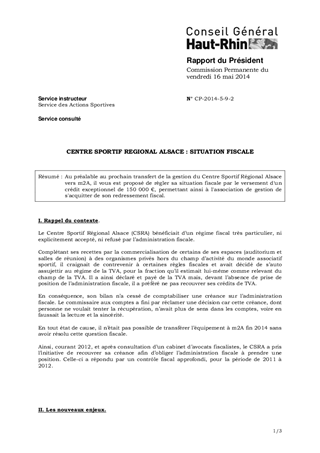 CENTRE SPORTIF REGIONAL ALSACE : SITUATION FISCALE