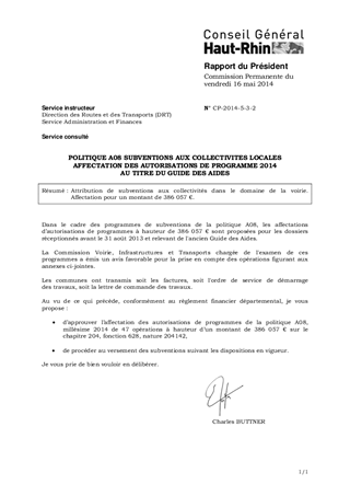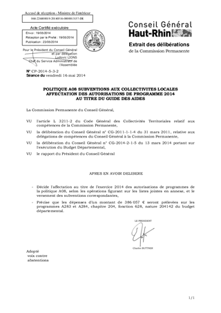 POLITIQUE A08 SUBVENTIONS AUX COLLECTIVITES LOCALES AFFECTATION DES AUTORISATIONS DE PROGRAMME 2014 AU TITRE DU GUIDE DES AIDES