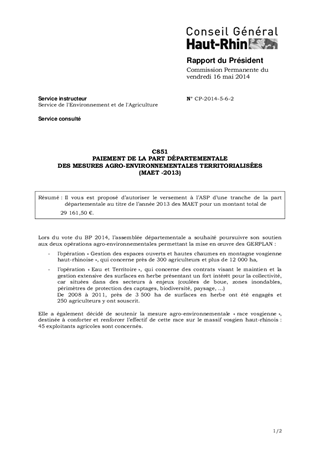 C851 PAIEMENT DE LA PART DÉPARTEMENTALE DES MESURES AGRO-ENVIRONNEMENTALES TERRITORIALISÉES (MAET -2013)