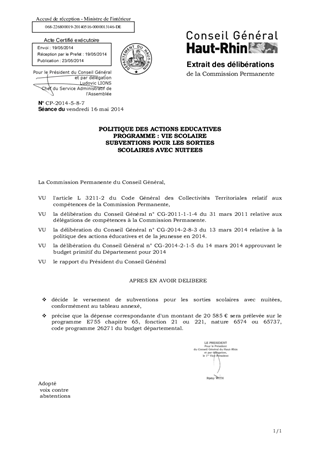 POLITIQUE DES ACTIONS EDUCATIVES PROGRAMME : VIE SCOLAIRE SUBVENTIONS POUR LES SORTIES SCOLAIRES AVEC NUITEES