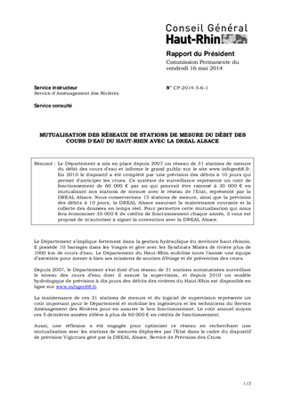 MUTUALISATION DES RÉSEAUX DE STATIONS DE MESURE DU DÉBIT DES COURS D'EAU DU HAUT-RHIN AVEC LA DREAL ALSACE