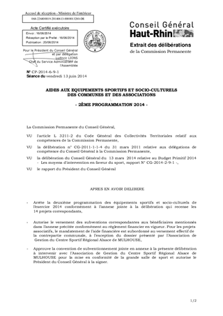 AIDES AUX EQUIPEMENTS SPORTIFS ET SOCIO-CULTURELS DES COMMUNES ET DES ASSOCIATIONS - 2ÈME PROGRAMMATION 2014 -