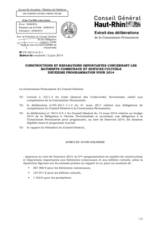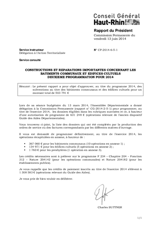 Le présent rapport a pour objet d'approuver, au titre du programme 2014, des subventions au titre des bâtiments communaux et des édifices cultuels pour un montant total de 503 791 €