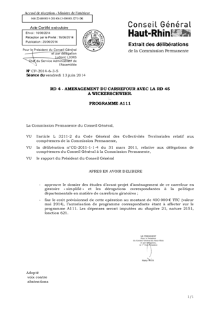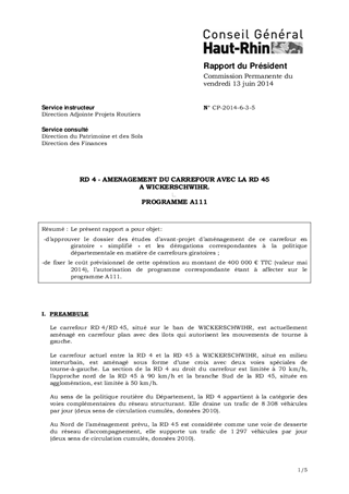 RD 4 - AMENAGEMENT DU CARREFOUR AVEC LA RD 45 A WICKERSCHWIHR. PROGRAMME A111