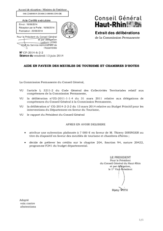 Il est proposé d'attribuer une subvention plafonnée à 7 000 € à M. Thierry DIRINGER pour la création d'un meublé de tourisme à WALBACH.