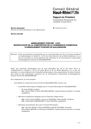 AMENAGEMENT FONCIER C442 MODIFICATION DE LA COMPOSITION DE LA COMMISSION COMMUNALE D'AMENAGEMENT FONCIER DE BALLERSDORF