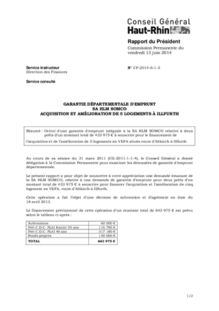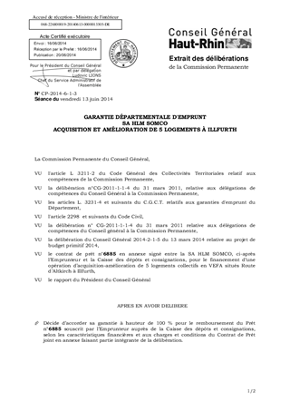 GARANTIE DÉPARTEMENTALE D'EMPRUNT SA HLM SOMCO ACQUISITION ET AMÉLIORATION DE 5 LOGEMENTS À ILLFURTH