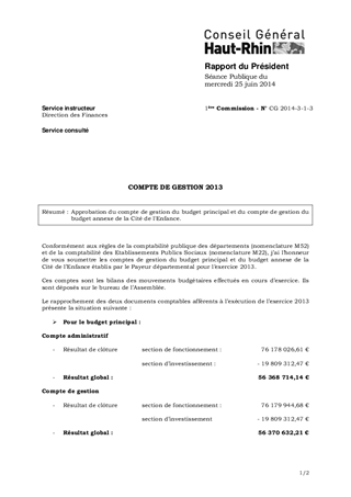 Approbation du compte de gestion du budget principal et du compte de gestion du budget annexe de la Cité de l'Enfance.