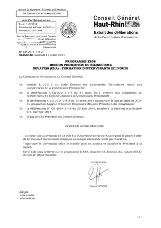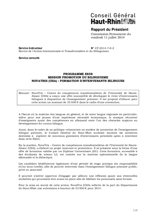 PROGRAMME E858 MISSION PROMOTION DU BILINGUISME NOVATRIS (UHA) : FORMATION D'INTERVENANTS BILINGUES