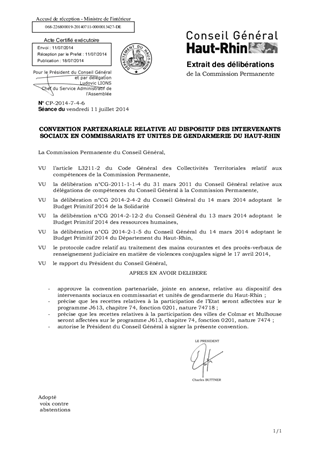 CONVENTION PARTENARIALE RELATIVE AU DISPOSITIF DES INTERVENANTS SOCIAUX EN COMMISSARIATS ET UNITES DE GENDARMERIE DU HAUT-RHIN