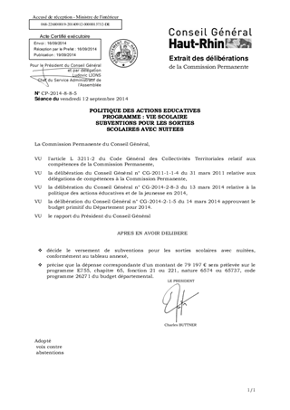 POLITIQUE DES ACTIONS EDUCATIVES PROGRAMME : VIE SCOLAIRE SUBVENTIONS POUR LES SORTIES SCOLAIRES AVEC NUITEES