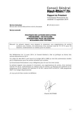 Le présent rapport vous propose le versement, aux organisateurs de sorties scolaires avec nuitées, de subventions d’un montant total de 79 197 € pour 53 dossiers, conformément au tableau joint en annexe.