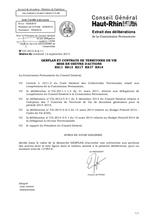 GERPLAN ET CONTRATS DE TERRITOIRE DE VIE MISE EN OEUVRE D'ACTIONS K811 K813 K217 K817 K814