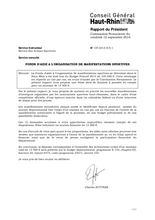 Le Fonds d'aide à l'organisation de manifestations sportives se déroulant dans le Haut-Rhin a été doté lors du Budget Primitif 2014 de 105 000 €. Cette enveloppe est répartie au cas par cas, en cours d'année par la Commission Permanente. Le présent rapport vous propose une 4ème série de dossiers à prendre en compte pour un montant de 13 500 €.