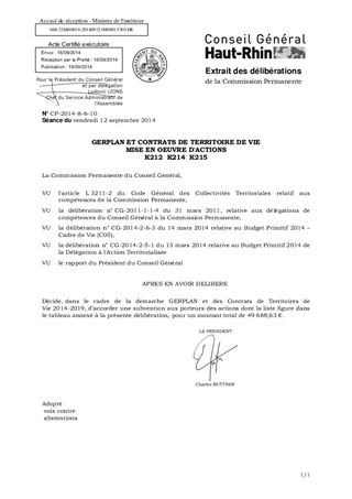 Dans le cadre de la démarche GERPLAN, le Département est sollicité pour la mise en œuvre de 4 actions inscrites au programme 2014 de 3 structures intercommunales et programmées dans les contrats de territoire de vie correspondants (CTV2). Il vous est proposé de financer ces demandes pour un montant total de 49 688,63 €.