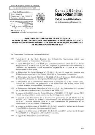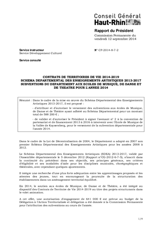 CONTRATS DE TERRITOIRES DE VIE 2014-2019 SCHEMA DEPARTEMENTAL DES ENSEIGNEMENTS ARTISTIQUES 2013-2017 SUBVENTIONS DU DEPARTEMENT AUX ECOLES DE MUSIQUE, DE DANSE ET DE THEATRE POUR L'ANNEE 2014
