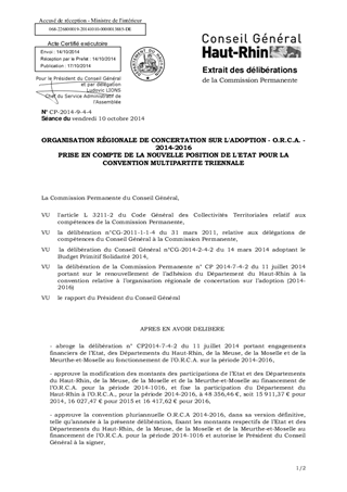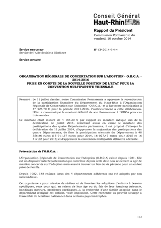 ORGANISATION RÉGIONALE DE CONCERTATION SUR L'ADOPTION - O.R.C.A. - 2014-2016 PRISE EN COMPTE DE LA NOUVELLE POSITION DE L'ETAT POUR LA CONVENTION MULTIPARTITE TRIENNALE