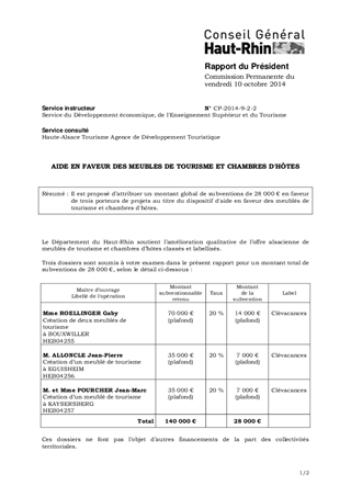 Il est proposé d’attribuer un montant global de subventions de 28 000 € en faveur de trois porteurs de projets au titre du dispositif d'aide en faveur des meublés de tourisme et chambres d'hôtes.