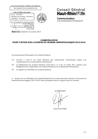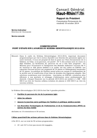 COMMUNICATION POINT D'ETAPE SUR L'AVANCEE DU SCHEMA GERONTOLOGIQUE 2012-2016
