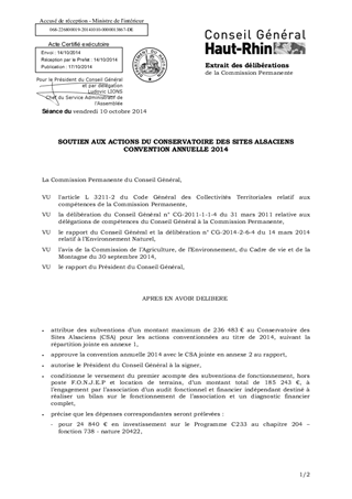 SOUTIEN AUX ACTIONS DU CONSERVATOIRE DES SITES ALSACIENS CONVENTION ANNUELLE 2014