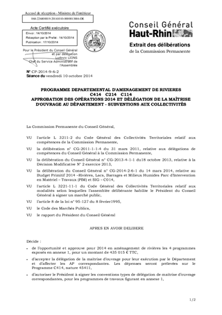 PROGRAMME DEPARTEMENTAL D'AMENAGEMENT DE RIVIERES C414 C214 C114 APPROBATION DES OPÉRATIONS 2014 ET DÉLÉGATION DE LA MAÎTRISE D'OUVRAGE AU DÉPARTEMENT - SUBVENTIONS AUX COLLECTIVITÉS