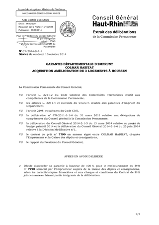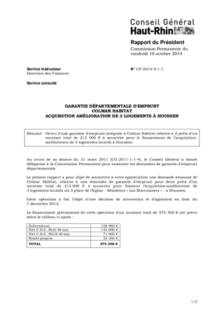 GARANTIE DÉPARTEMENTALE D'EMPRUNT COLMAR HABITAT ACQUISITION AMÉLIORATION DE 3 LOGEMENTS À HOUSSEN