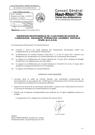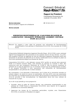 SUBVENTION EXCEPTIONNELLE DE 15 600 EUROS EN FAVEUR DE L'ASSOCIATION - SOLIDARITÉ- INTÉGRATION- LOGEMENT- NOUVELLE ETAPE- (S.I.L.O.N.E)