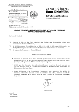 Il vous est proposé d'adopter un nouveau dispositif d'aide au fonctionnement annuel des offices de tourisme ou assimilés haut-rhinois, quel que soit leur statut juridique, et de donner délégation à la Commission Permanente pour approuver les grilles de notation, actualisées chaque année, et attribuer les aides, dont les montants pourront également être ajustés afin de tenir compte de l’enveloppe financière disponible.