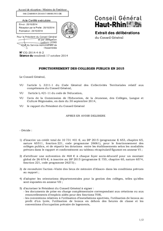 FONCTIONNEMENT DES COLLEGES PUBLICS EN 2015