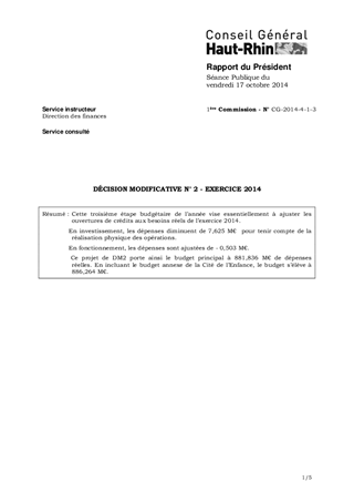DÉCISION MODIFICATIVE N° 2 - EXERCICE 2014