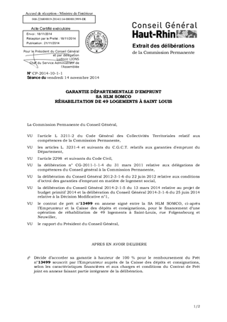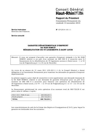 GARANTIE DÉPARTEMENTALE D'EMPRUNT SA HLM SOMCO RÉHABILITATION DE 49 LOGEMENTS À SAINT LOUIS