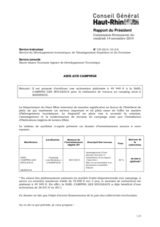 Il est proposé d'attribuer une subvention plafonnée à 49 949 € à la SARL CAMPING LES BOULEAUX pour la réalisation de travaux au camping situé à RANSPACH.
