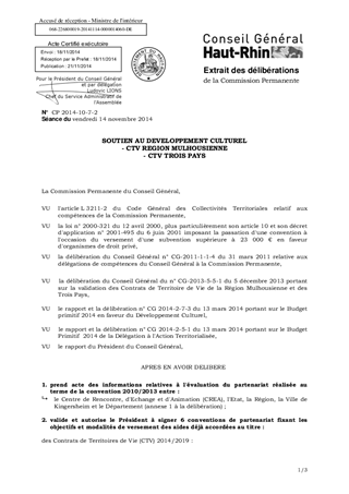 SOUTIEN AU DEVELOPPEMENT CULTUREL - CTV REGION MULHOUSIENNE - CTV TROIS PAYS