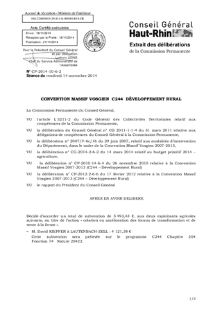 CONVENTION MASSIF VOSGIEN C244 DÉVELOPPEMENT RURAL