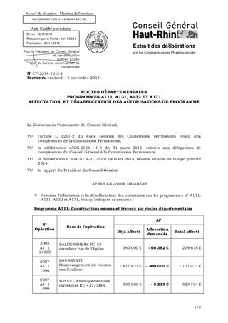 ROUTES DÉPARTEMENTALES PROGRAMMES A111, A131, A132 ET A171 AFFECTATION ET DÉSAFFECTATION DES AUTORISATIONS DE PROGRAMME