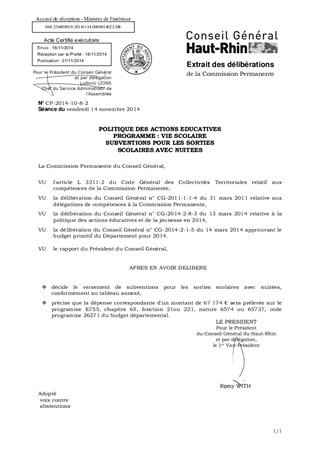 POLITIQUE DES ACTIONS EDUCATIVES PROGRAMME : VIE SCOLAIRE SUBVENTIONS POUR LES SORTIES SCOLAIRES AVEC NUITEES