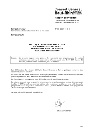 Le présent rapport vous propose le versement, aux organisateurs de sorties scolaires avec nuitées, de subventions d’un montant total de 67 174 € pour 26 dossiers, conformément au tableau joint en annexe.