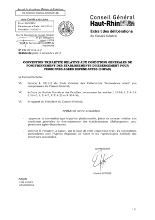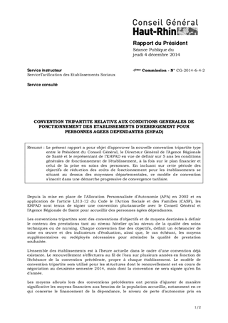 Le présent rapport a pour objet d’approuver la nouvelle convention tripartite type entre le Président du Conseil Général, le Directeur Général de l’Agence Régionale de Santé et le représentant de l’EHPAD en vue de définir sur 5 ans les conditions générales de fonctionnement de l’établissement, à la fois sur le plan financier et celui de la prise en soins des personnes. En incluant sur cette période des objectifs de réduction des coûts de fonctionnement pour les établissements se situant au dessus des moyennes départementales, ce modèle de convention s’inscrit dans une démarche progressive de convergence tarifaire.